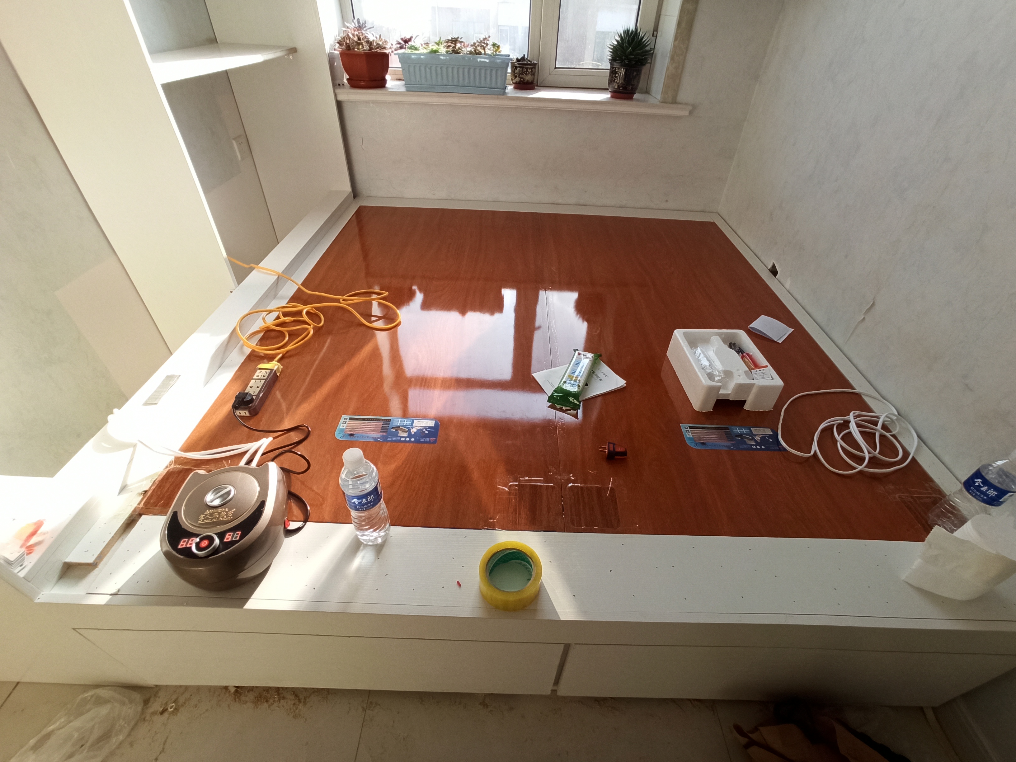 水暖炕,内部是聚氨酯发泡和高分子合成管道,外观是镀铝锌钢板,硬度高。优点是代替传统火炕和电热毯的一款产品,导热系数非常高,主机0-75度可随意调节,水暖坑在室内不覆盖的状态下可以对室内空气加热,起到地暖的作用。